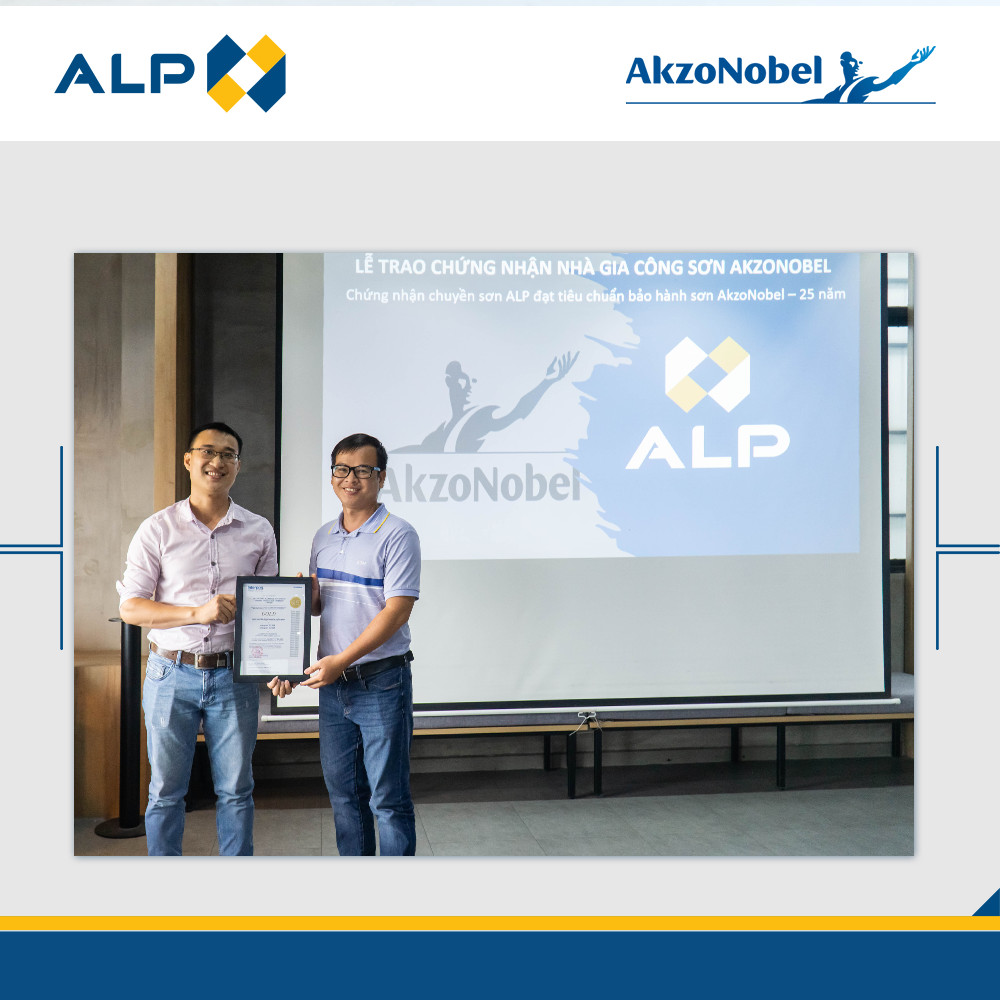 Ngày 30/9 vừa qua, An Lập Phát tự hào đạt chứng nhận AAMA của Hoa Kỳ do công ty Akzonobel xác nhận. Dây chuyền sơn tĩnh điện An Lập Phát đạt chuẩn AAMA của Hoa Kỳ do công ty Akzonobel chứng nhận.