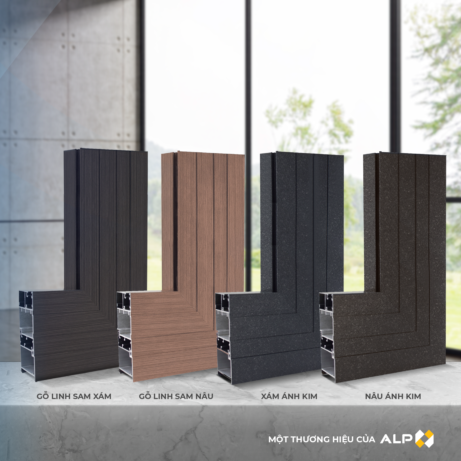 Trong khi đó, Gỗ Linh Sam Nâu và Gỗ Linh Sam Xám được phủ phim vân gỗ 3D, tạo nên bề mặt vân gỗ tự nhiên, sống động như gỗ thật. Công nghệ phủ phim 3D không chỉ mang lại vẻ đẹp tự nhiên mà còn giúp bảo vệ bề mặt nhôm khỏi các tác động của môi trường. Phim vân gỗ 3D tạo ra một lớp bảo vệ chắc chắn, giúp nhôm chống lại sự ăn mòn, trầy xước và các tác nhân gây hại khác. Đồng thời, công nghệ này còn giúp nâng cao tuổi thọ sản phẩm và dễ dàng vệ sinh. Với công nghệ phủ phim 3D, bề mặt nhôm không chỉ đẹp mắt mà còn bền bỉ, giúp duy trì vẻ đẹp và chất lượng qua nhiều năm sử dụng.