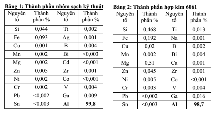 • Thứ nhất, nhôm được làm bằng hợp kim nhôm nguyên chất kết hợp với một số kim loại: Si, Mg. Tùy vào đặc tính của từng dòng nhôm mà thành phần hợp kim của nhôm công nghiệp cũng khác nhau.