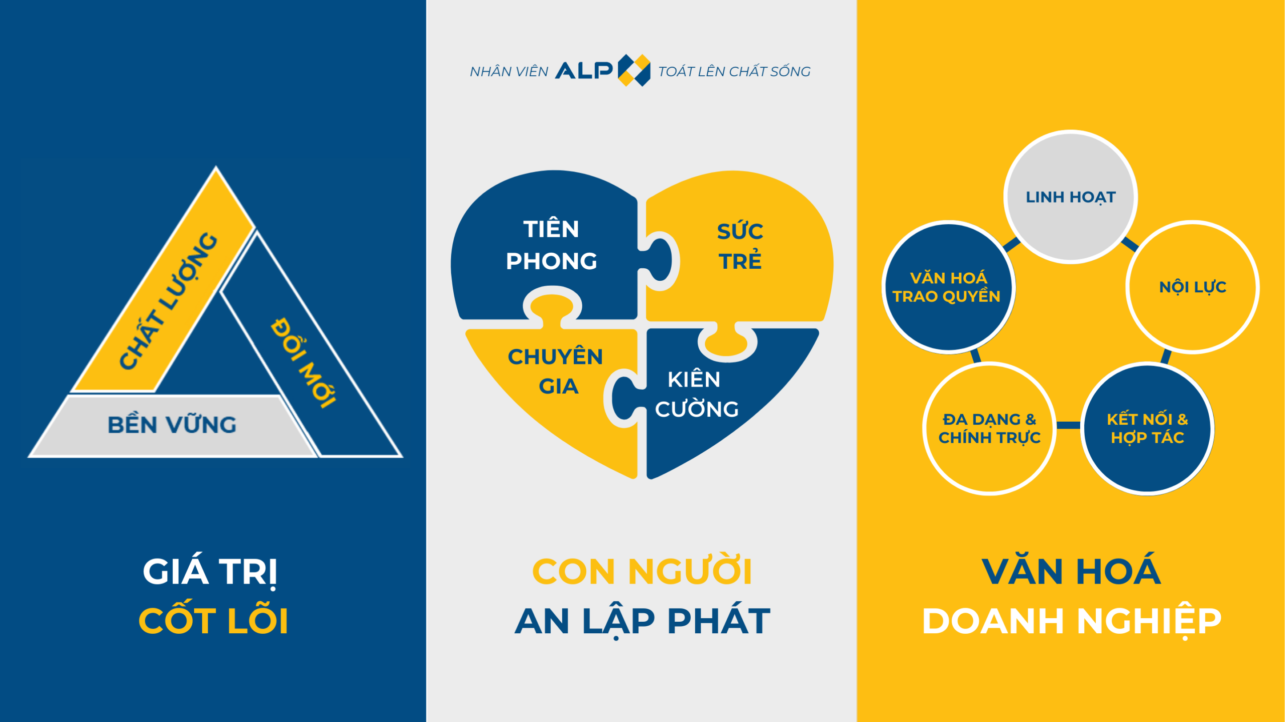 Kiên trì với 4 Giá trị cốt lõi về con người “Tiên phong – Sức trẻ – Kiên cường – Chuyên gia”, chúng tôi luôn cố gắng tạo ra môi trường làm việc hiệu quả, không chỉ giúp tăng năng suất lao động mà còn thúc đẩy sự sáng tạo và đổi mới trong tổ chức.